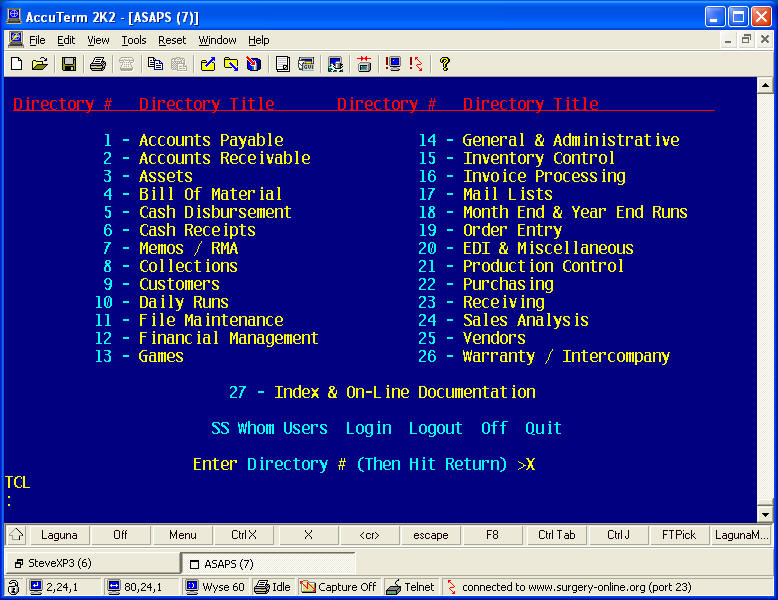 Step 1: Launch AccuTerm and Logon to your Account. Type X to go to the TCL prompt.