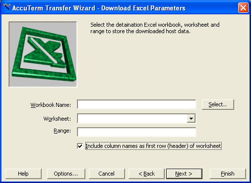 10. Check the "Include column names as first row (header) of worksheet. Then Click the "Select.." button