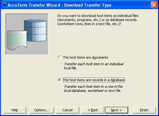 6. Select "The host items are records in a database" Click Next.