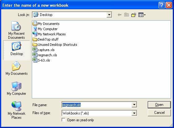 12. Browse to the path where the spreadsheet will be written. Name the Spreadsheet in the "File name" text box. Click "Open"